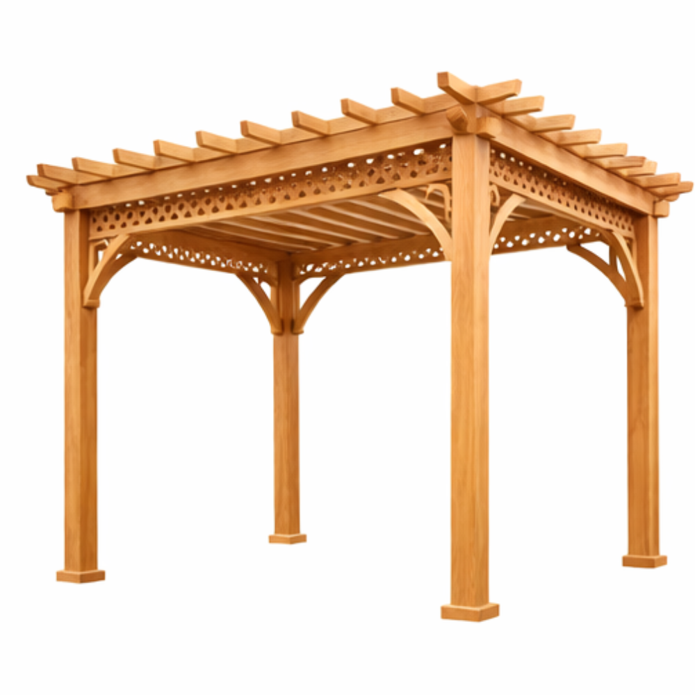Klasyczna pergola ogrodowa z ażurowym wykończeniem