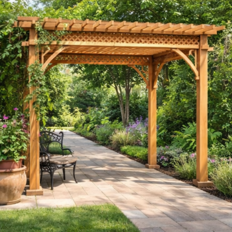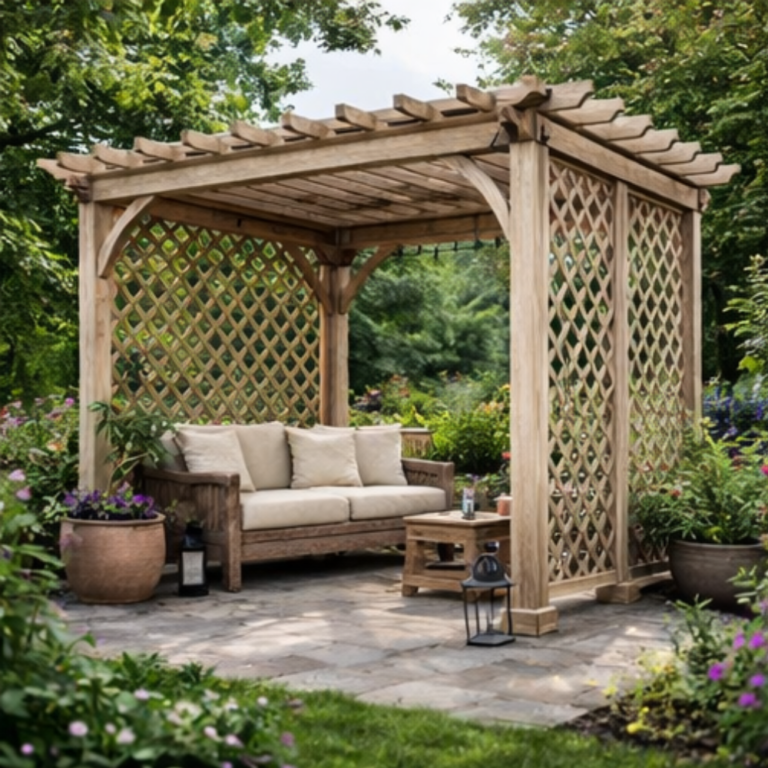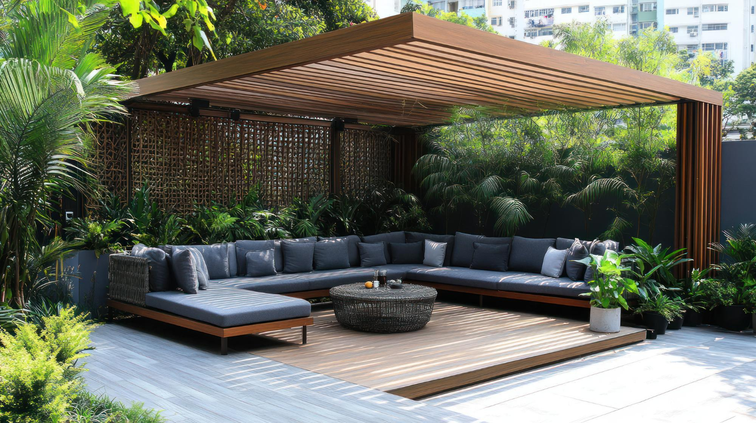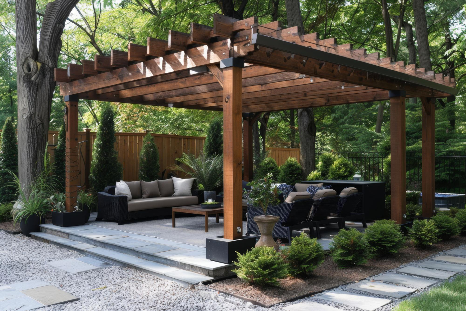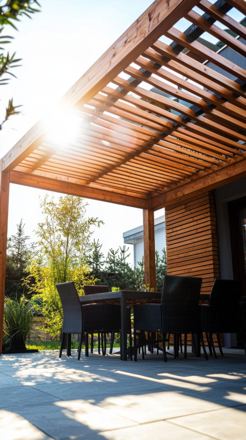 Nowoczesna pergola ogrodowa z lamelowym dachem