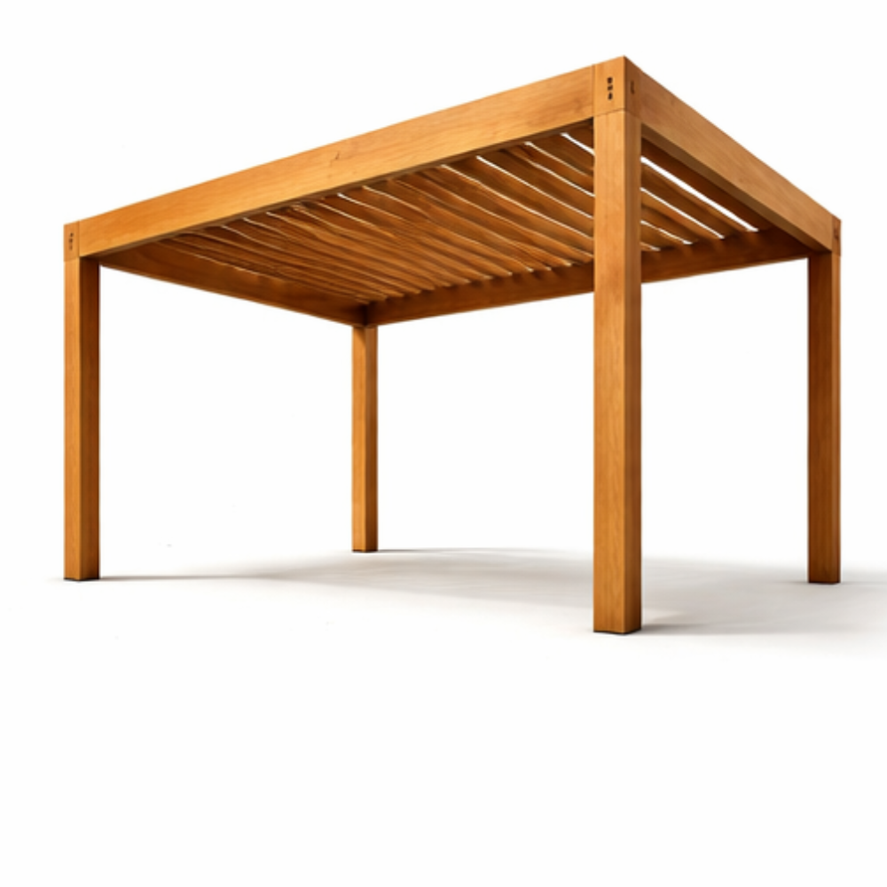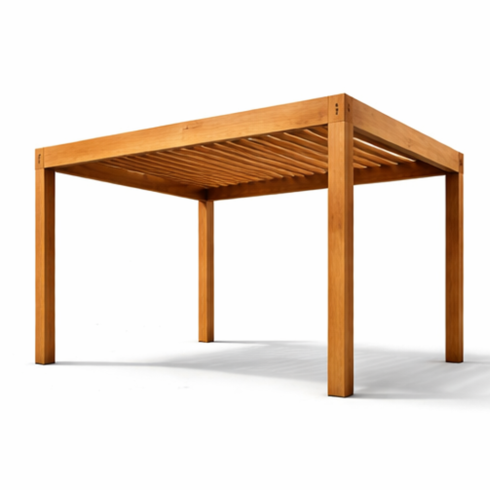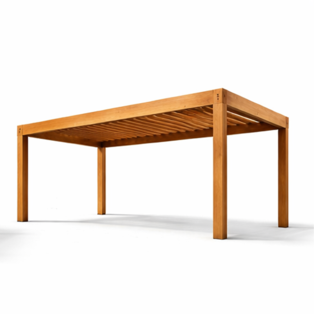 Minimalistyczna forma, solidna drewniana konstrukcja i elegancki, lamelowy dach tworzą harmonijną przestrzeń wypoczynkową w ogrodzie, na tarasie lub przy domu. Pergola została zaprojektowana z myślą o nowoczesnych aranżacjach, w których liczy się czysta linia, proporcja i naturalne materiały.