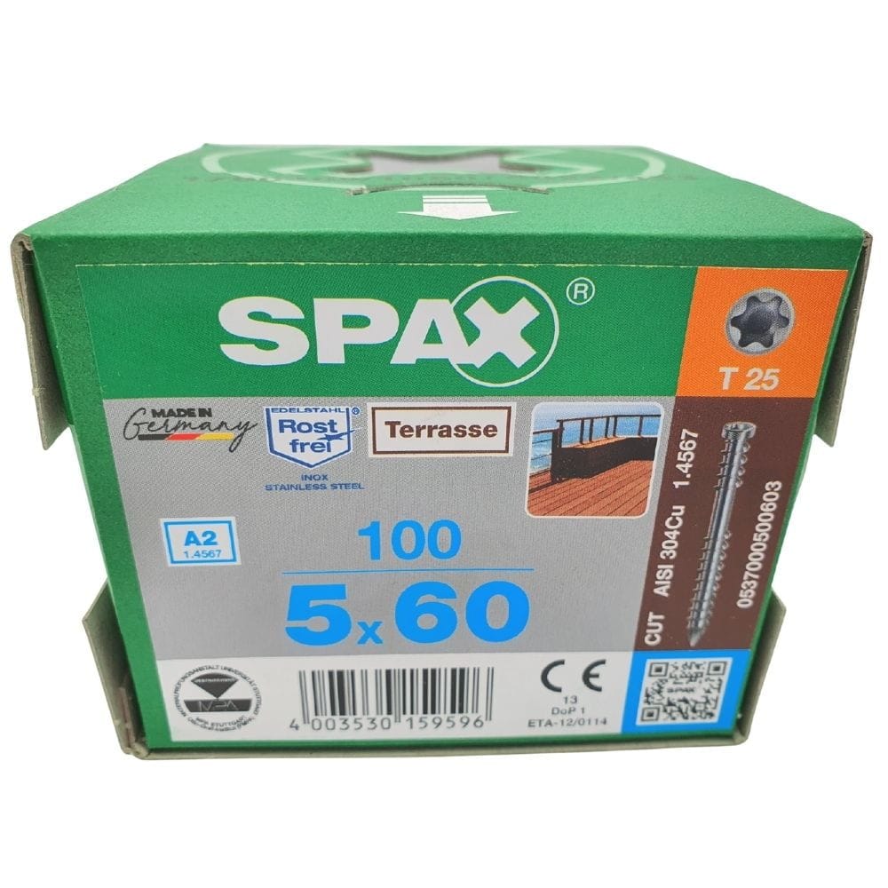 SPAX Wkręty do drewna – do tarasu A2 5×60 (100szt.) srebrny