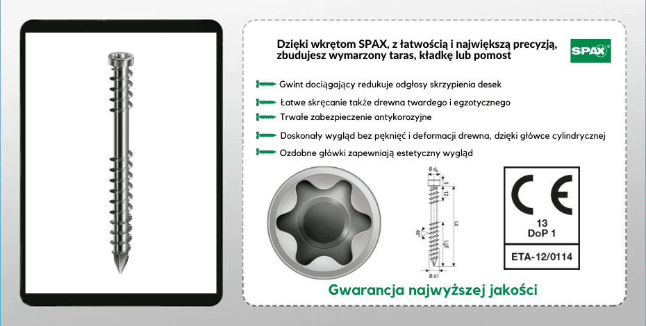 SPAX to międzynarodowa, znana i ceniona firma z niemal 200 letnim doświadczeniem. Zajmuje się przede wszystkim produkowaniem części złącznych. Ich produkty charakteryzują się wyjątkową wytrzymałością, odpornością na korozję i łatwym wkręcaniem. Wszystko to dzięki wypracowanej przez lata technologii i globalnym doświadczeniu.