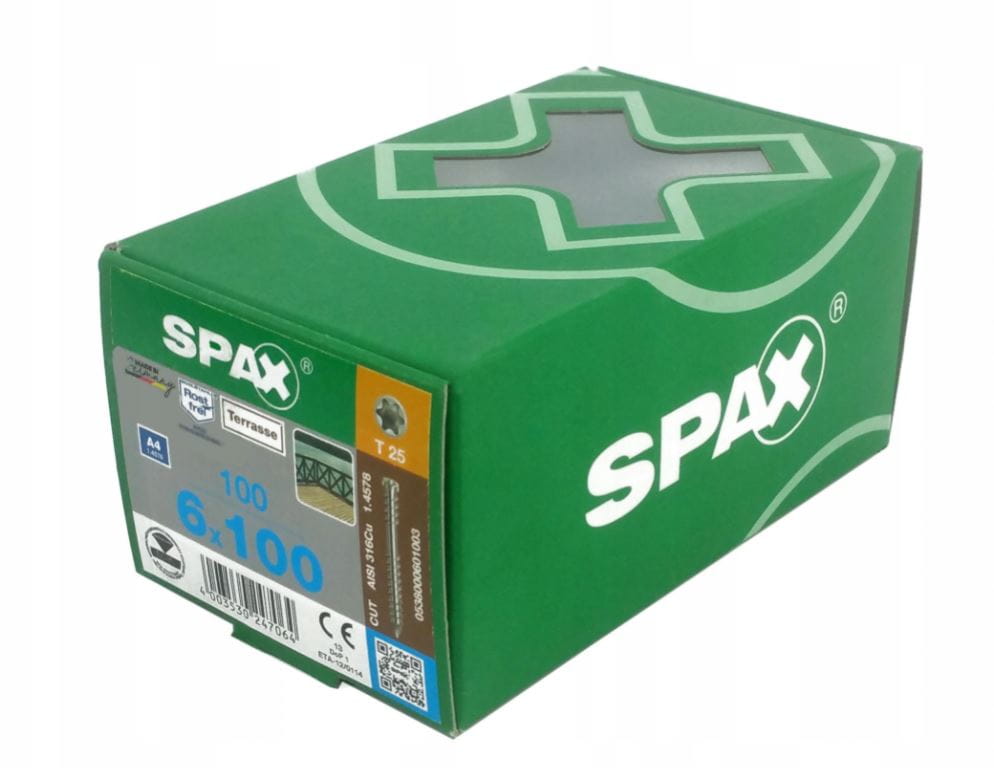 SPAX Wkręty do tarasu 6×100 (100szt.) A4 kwasoodporny